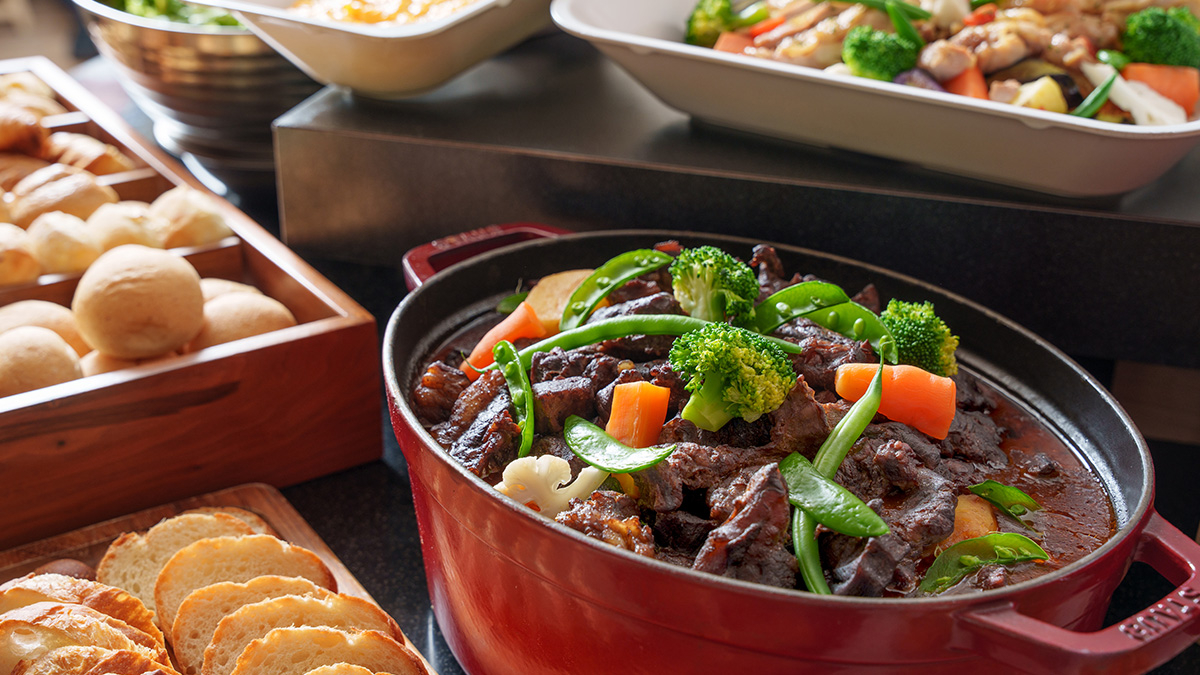 燉煮和牛、牛排等每日更換的肉料理,追求鮮嫩口感,打造出分量十足的奢華美味。
